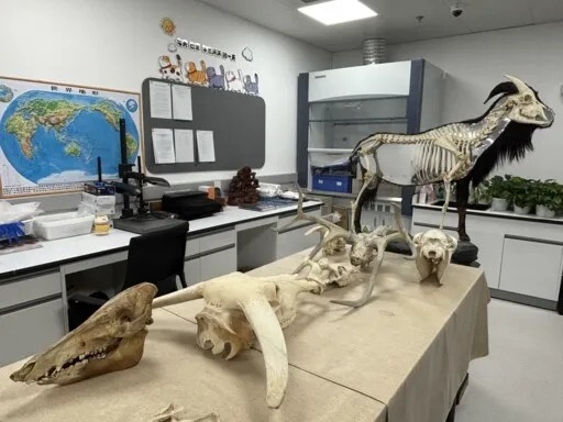 動物考古實驗室展示的動物骨骼標本 記者 班曉悅/攝