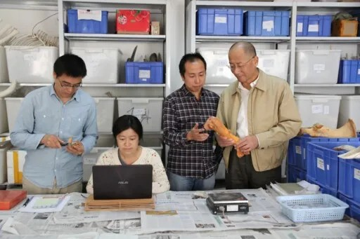 袁靖(右一)與呂鵬(右二)等人在動物考古實驗室工作 呂鵬/供圖