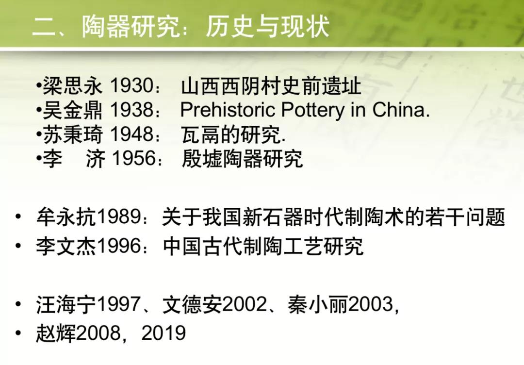 新世紀(jì)以來,陶器研究涉及更多方面。2018年,趙輝先生在屈家?guī)X陶器會議上做出全面總結(jié),據(jù)他講話形成的文章《當(dāng)今考古學(xué)的陶器研究》是陶器研究重要的指導(dǎo)性文獻。